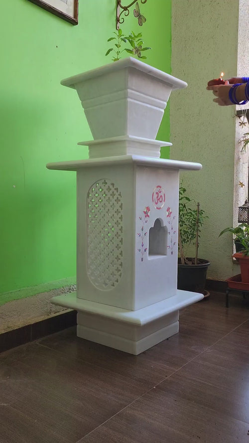 Marble Tulsi Pot, White Marble Inlay - Handicraft Bazaar