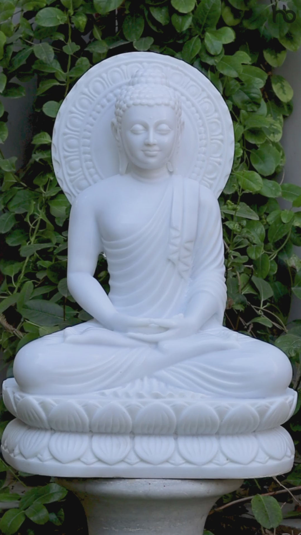 Buddha, 24 Inch, White Marble Statue - Handicraft Bazaar