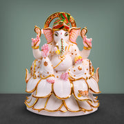 Lord Ganesh, 12 Inch, White Marble Statue - Handicraft Bazaar