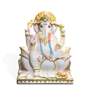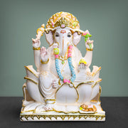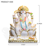 Lord Ganesh, 12 Inch, White Marble Statue - Handicraft Bazaar
