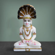 Lord Parshwanath, 9 Inches, White Marble Statue - Handicraft Bazaar
